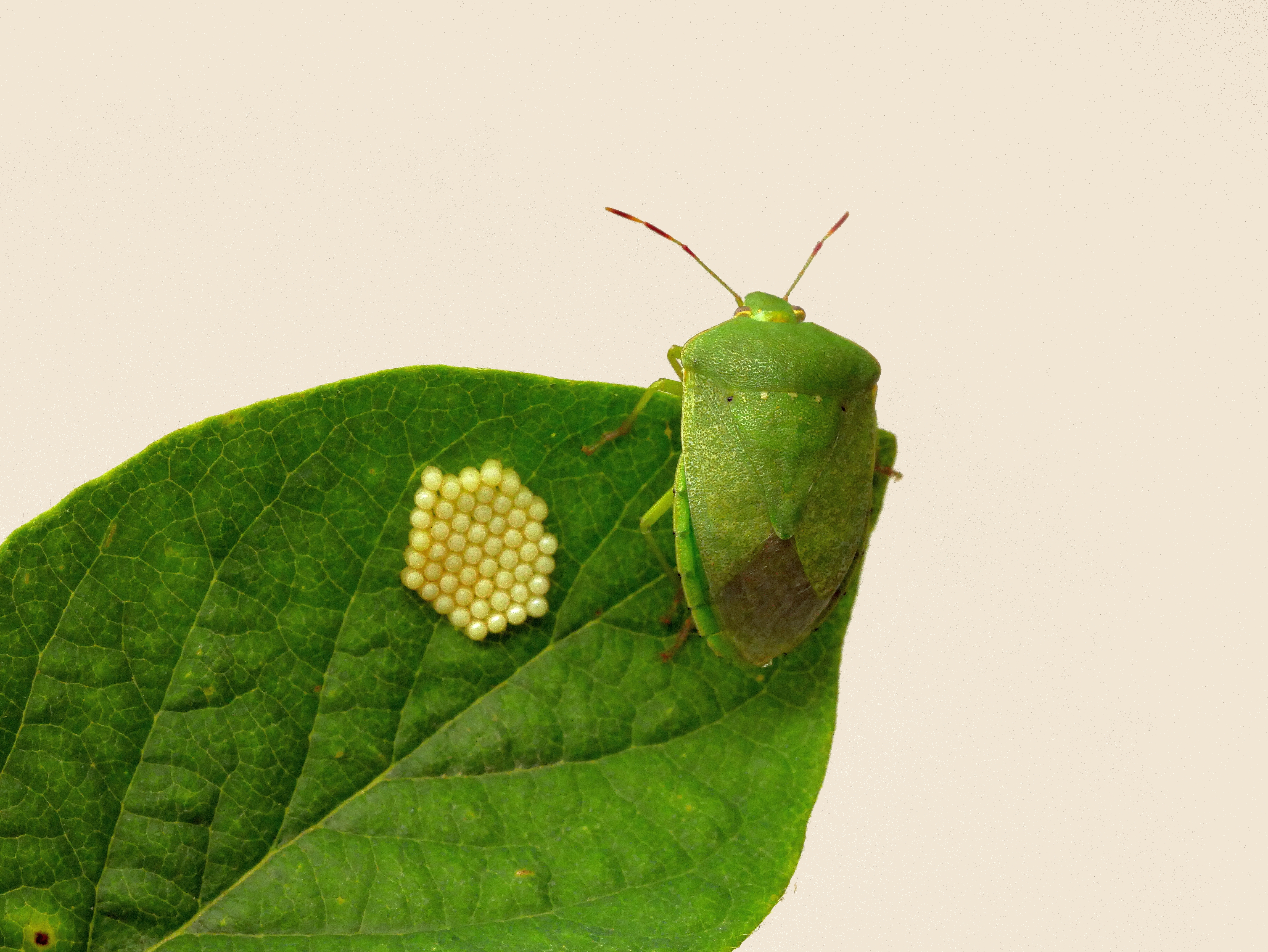 Nazara viridula - Eigelege mit adultem Tier Foto: Olaf Zimmermann/LTZ