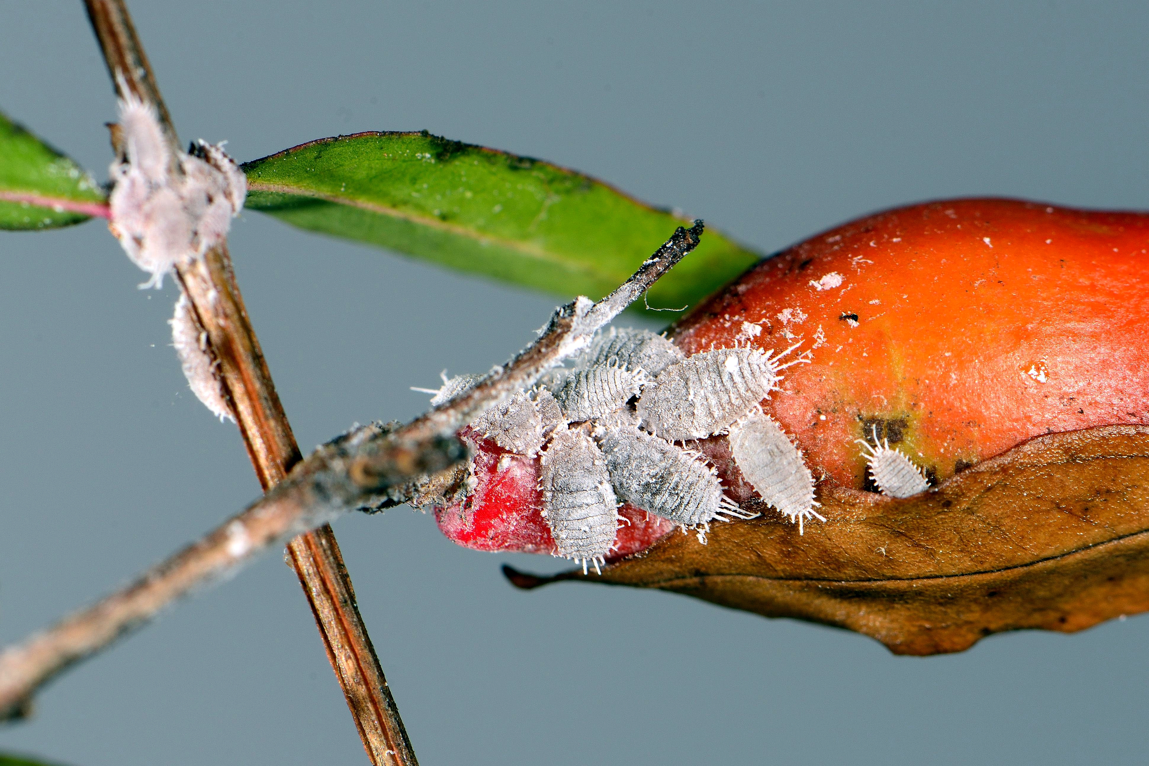 Pseudococcus viburni - Weibchen an getopftem Granatapfel Foto: Klaus Schramayer
